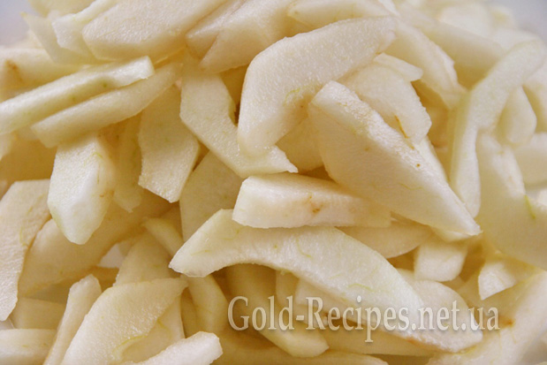 Груші миємо, чистимо і нарізаємо невеликими скибочками, видаляючи при цьому серединку.
