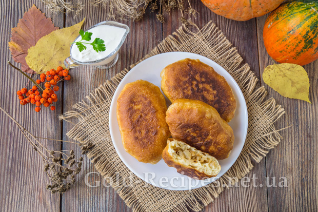 Подавати пиріжки з капустою будемо гарячими з домашньою сметаною або часниковим соусом.
