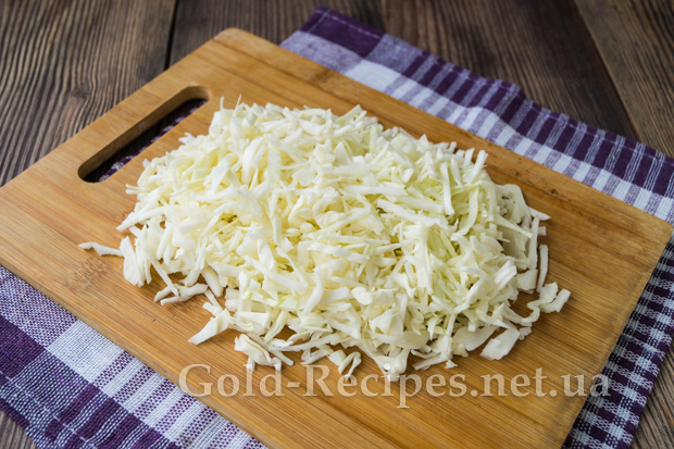 Розріжемо капусту на частини й тонко нашаткуємо.