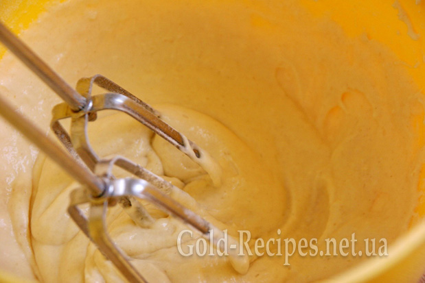 Потім вмикаємо міксер і, постійно перемішуючи, додаємо невеликими порціями борошно.