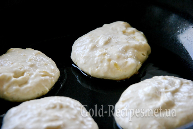 Розігріваємо сковорідку з рослинною олією і, акуратно, столовою ложкою викладаємо тісто на сковорідку, формуючи круглі оладки. Смажимо оладки на невеликому вогні доти, доки не підрум’яняться.
