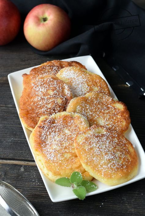 Ніжні оладки зі шматочками соковитого яблука відмінно поєднуються зі сметаною, ягідним варенням, медом, кленовим сиропом або нутеллою.