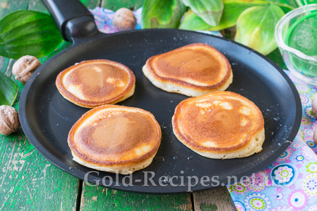 Під час приготування оладки на фруктовому йогурті відмінно піднімаються і залишаються пишними навіть після охолодження.
