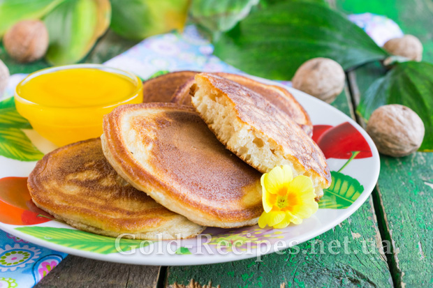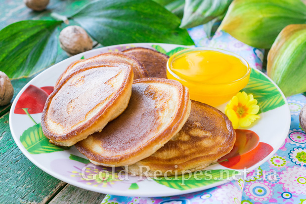 Готові оладки будемо подавати одразу ж, доповнивши десерт сметаною, джемом або медом.