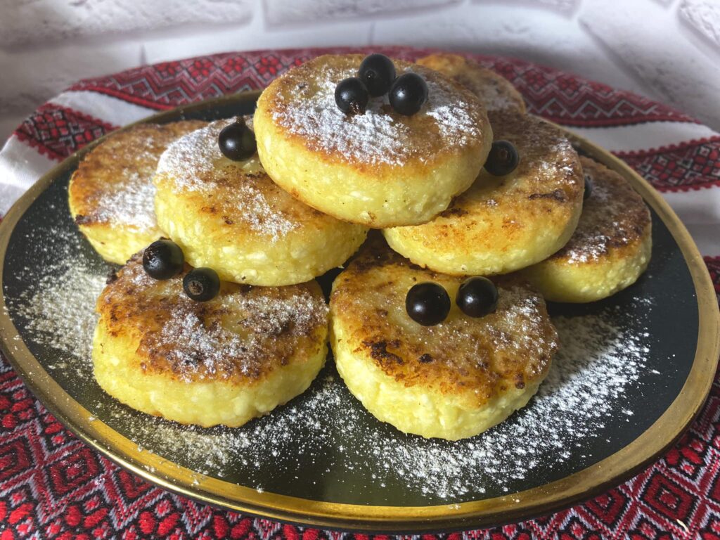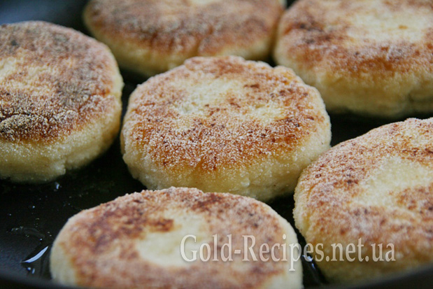 Випікати на олії.Її треба зовсім мало на пательню.З двух сторін,на слабкому вогні до зарум‘янення.Це важливо,щоб пропеклися.Подавати з варенням,сметаною,в мене смородина,присипати пудрою…Це смачно🥰👍