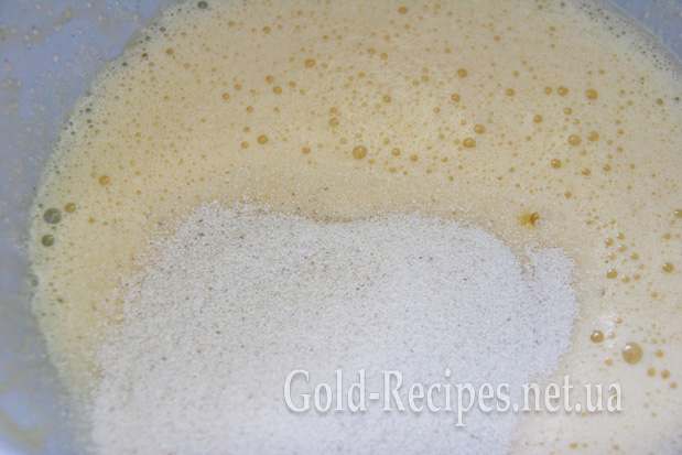 У чаші міксера збиваємо яйце з цукром, додаємо манну крупу і перемішуємо.