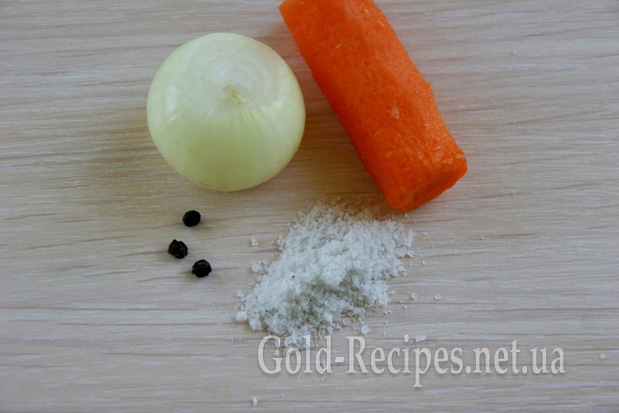 Додаємо в каструлю очищену моркву та цибулю, сіль і перець горошком. Накриваємо каструлю кришкою і варимо бульйон на реберцях 1,5 – 2 години.