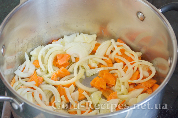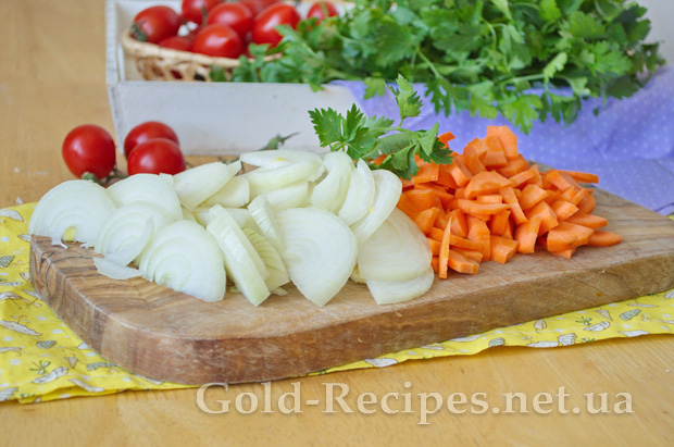 Цибулю і моркву для супу нарізаємо довільно, приблизно як у мене на фото.