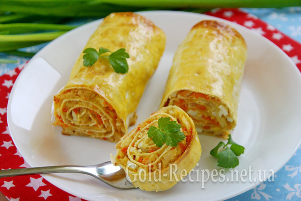 Запечений рулет із лаваша виходить дуже цікавим на смак і красивим, з рум’яною апетитною скоринкою.