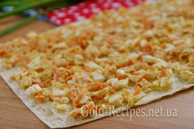 Начинку викладаємо рівномірно на лист лаваша.