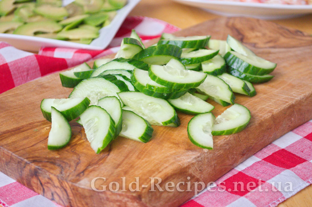 Огірки миємо, і нарізаємо тонкими півкільцями.