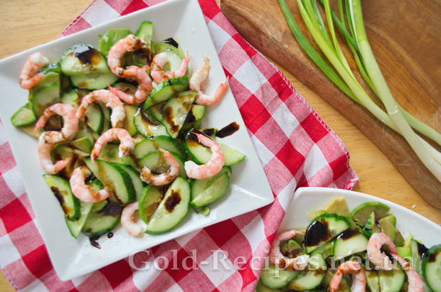 Потім додаємо в наш салат очищені креветки.