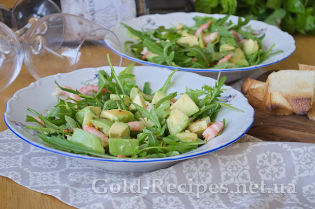 Салат з креветками, авокадо і руколою