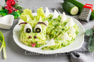 Святковий салат у вигляді дракона обов’язково має бути на новорічному столі 2024. Завдяки своєму оригінальному вигляду цей салат порадує і дорослих, і дітей. Він дуже ефектно виглядає серед інших страв та привертає до себе увагу. Салат виходить ситним, смачним та соковитим. Всі продукти добре поєднуються між собою, роблячи страву ніжною …