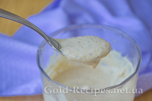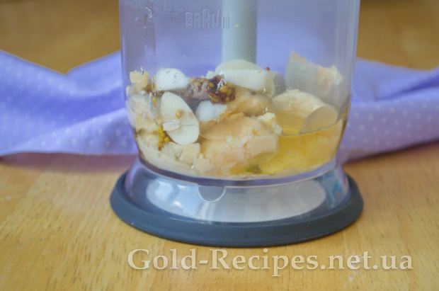 І збиваємо на максимальній швидкості в однорідну масу. Рецепт соусу містить анчоуси, які самі по собі дуже солоні, тому сіль у заправку для цезаря ми не додаємо.