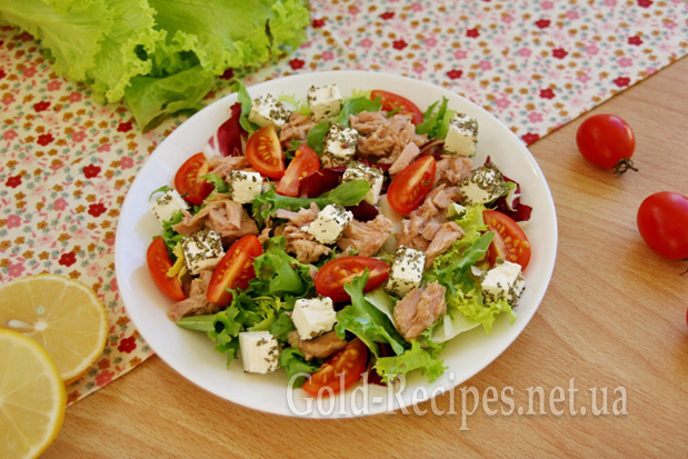 Подаємо легкий салат із тунцем і фетою до столу. Смачного!