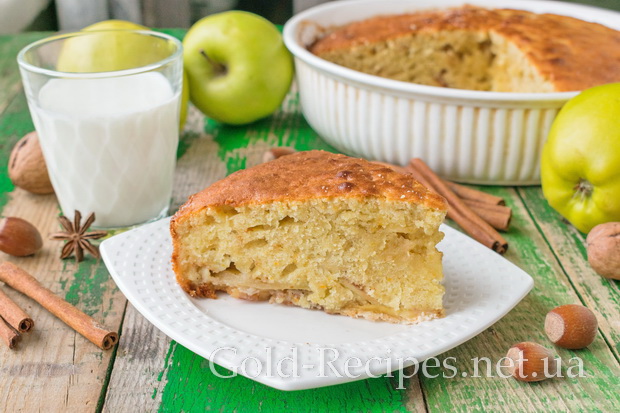 Готову випічку остудимо і будемо подавати дуже смачний пиріг із яблуками з молоком або чаєм.