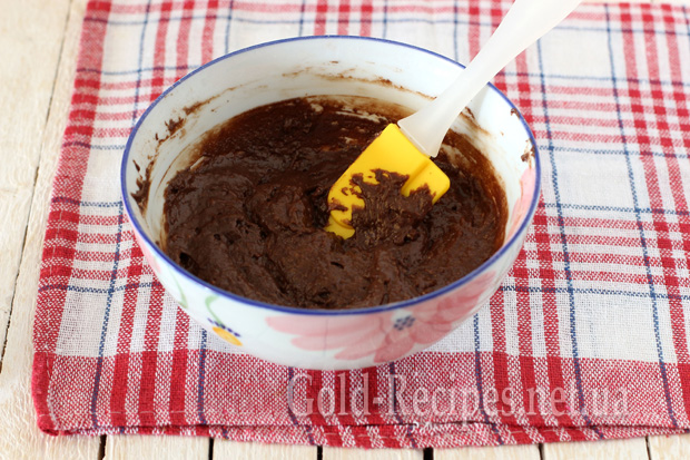 Тепер можна змішати дві маси і вимісити шоколадне кексове тісто.