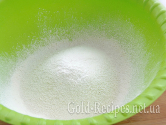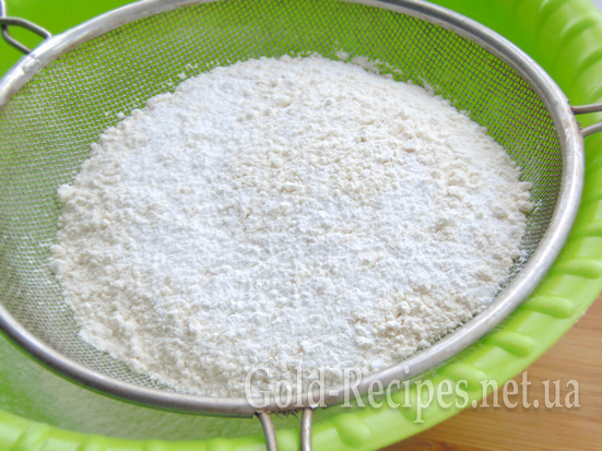 У борошно додаємо розпушувач і просіваємо все разом у миску.