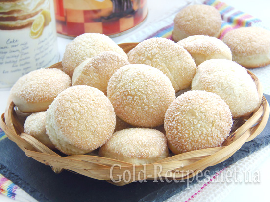 Готово! Зверху печиво вкрите хрусткою цукровою скоринкою, а всередині воно дуже м’яке з трохи шаруватою структурою.