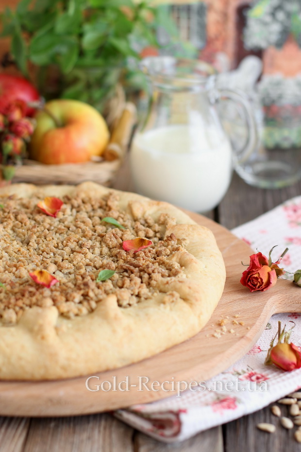 Присипаємо штрейзелем усю яблучну начинку.