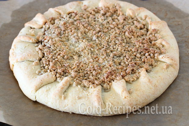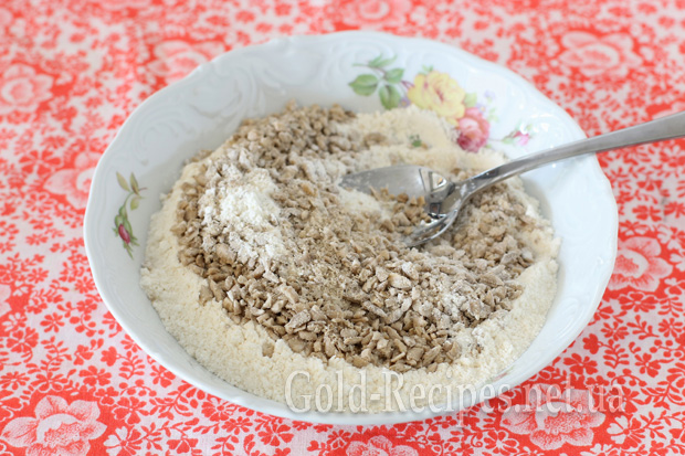 Далі штрейзель доповнюється будь-якими подрібненими горіхами або насінням (у моєму випадку – насінням соняшнику).