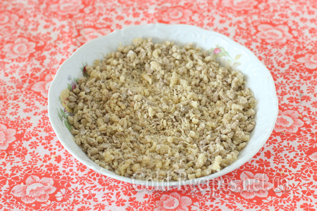 Перетираємо всі інгредієнти руками в крихту. Штрейзель готовий, поки можна перекласти його в морозилку.