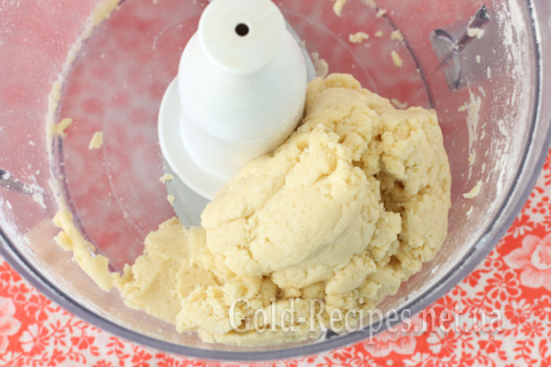 У процесі вимішування вливаємо по черзі ложками воду (її може знадобитися менше, зверніть увагу на структуру одержуваного тіста). У підсумку комбайн сам скріпить усе тісто в грудку.