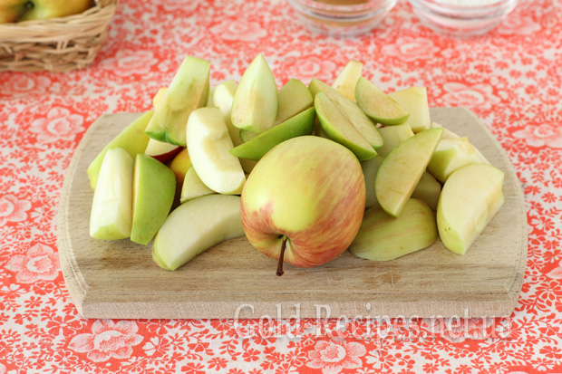 Вирізаємо з кожного яблука насіннєву коробочку, бажано очистити їх від шкірки.