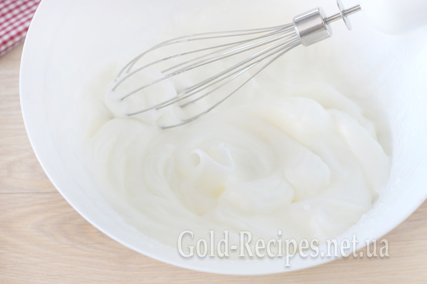 Залишені раніше білки збиваємо з дрібкою солі до крутих піків.