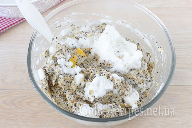 Двома або трьома порціями повітряну білу масу вмішуємо в яблучно-макове тісто.