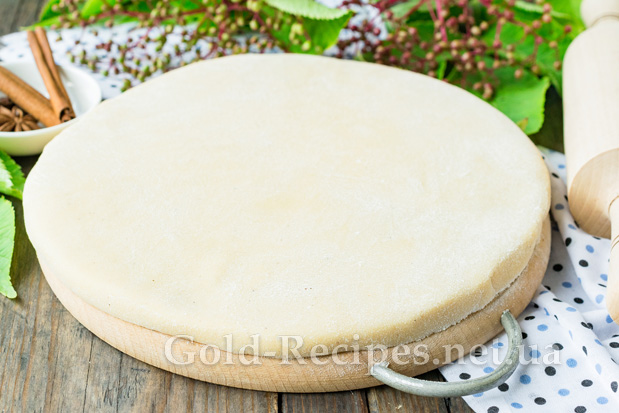 Готове тісто розділимо навпіл. На присипаній борошном робочій поверхні розкачаємо одну частину тіста в пласт завтовшки 10-15 мм.