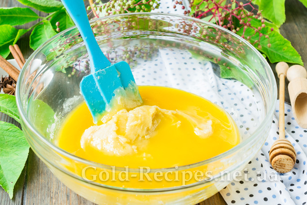 В окремому посуді з’єднаємо мед і решту 15 мл води. Ретельно перемішаємо.