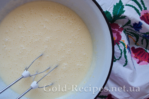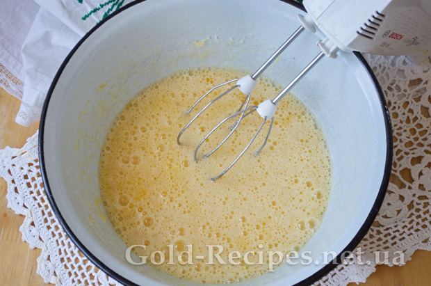 Яйця збиваємо з цукром до повного розчинення кристаликів цукру. Слід сказати, що всі інгредієнти для приготування цієї паски повинні бути кімнатної температури.