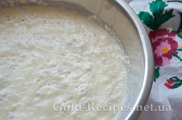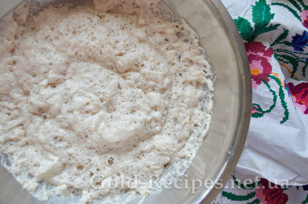 Саме час подивитись як там наша опара. Повинна бути гарна шапочка і великі пухирці – це значить, що все ок, дріжджі активувались і випічка вийде якнайкраще.