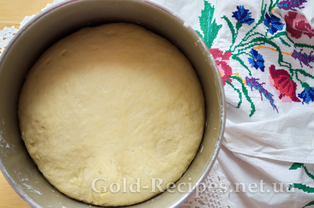 Каструлю слід змастити олією. Відправляємо тісто для паски на перше вистоювання у тепле місце на 2,5-3 години.
