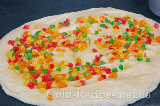 Коли наше тісто підійметься вдруге, знову викладаємо його на стіл, трохи розтягуємо і вмішуємо підготовлені цукати і сухофрукти.