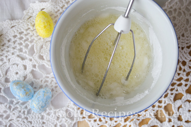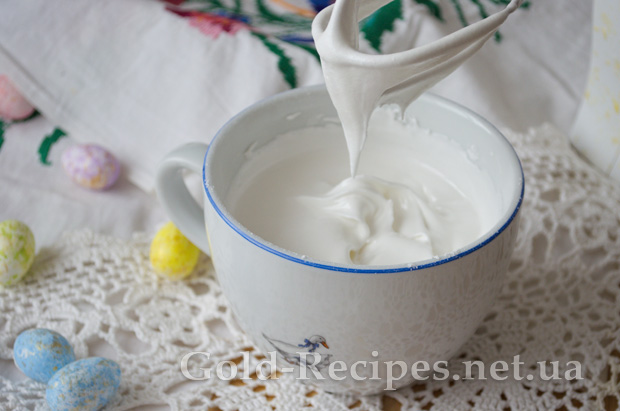 Для глазурі збиваємо білки з цукровою пудрою і лимонною кислотою.