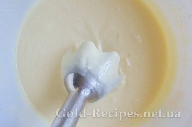 Тепер збиваємо сир і яєчно-цукрову масу занурювальним блендером.