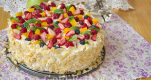 Детальніше...Коли мені потрібно приготувати універсальний десерт для великої кількості гостей – рецепт бісквітного торта з фруктами це моя паличка-виручалочка. Тортик завжди подобається як дорослим, так і дітям, тому однаково добре підходить як для традиційного застілля, так і для дитячого свята. Саме такий бісквітний торт із фруктами та кремом зі збитих …