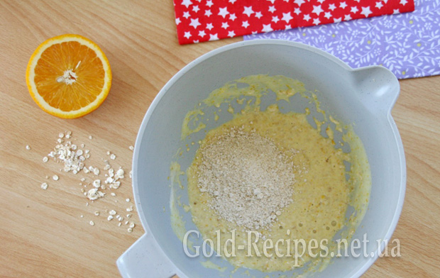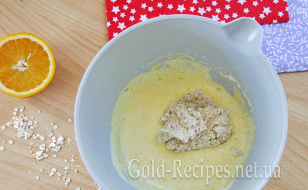 За 2-3 прийоми, вимішуючи, додаємо вівсяне борошно.