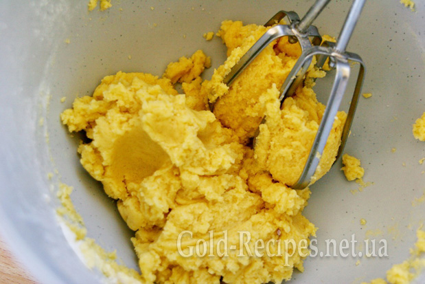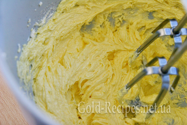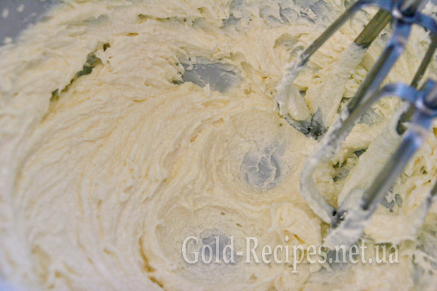 Розм’якшене масло збиваємо з цукром до білої пишної маси – хвилини 2-3 (якщо ви користуєтесь міксером чи комбайном; якщо віночком – дещо довше).