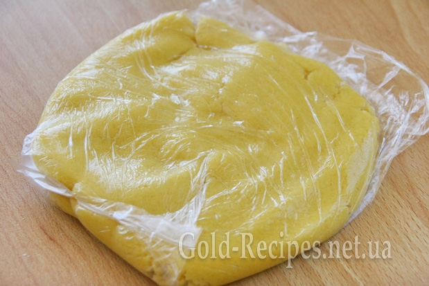 Формуємо з тіста плоский корж, загортаємо в харчову плівку та поміщаємо в холодильник на 2-3 години.
