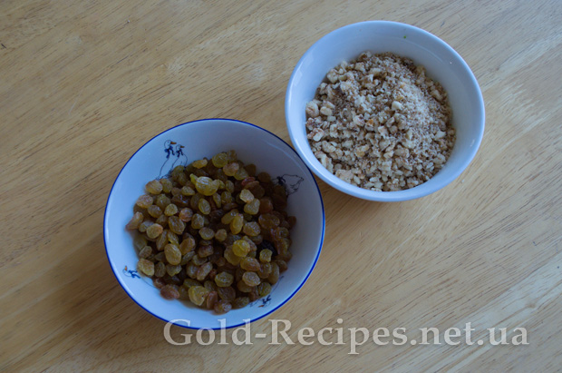 Заздалегідь готуємо родзинки і волоські горіхи.
