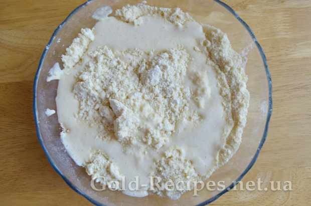 Додаємо борошно, що залишилося, і замішуємо не круте пісочне тісто.