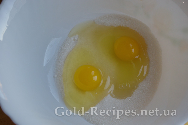 З’єднуємо яйця з цукром, і збиваємо міксером у круту піну до повного розчинення цукру.