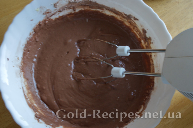 Перемішуємо шоколадне тісто міксером на низькій швидкості.
