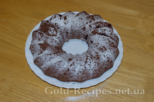 Дістаємо пиріг із духовки, попередньо перевіривши на готовність дерев’яною зубочисткою. Чекаємо коли пиріг повністю охолоне, потім перекладаємо на тарілку.
