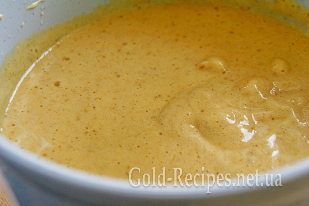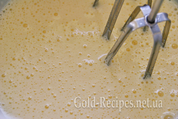 У великій ємності збиваємо міксером яйця з цукром до білого кольору.