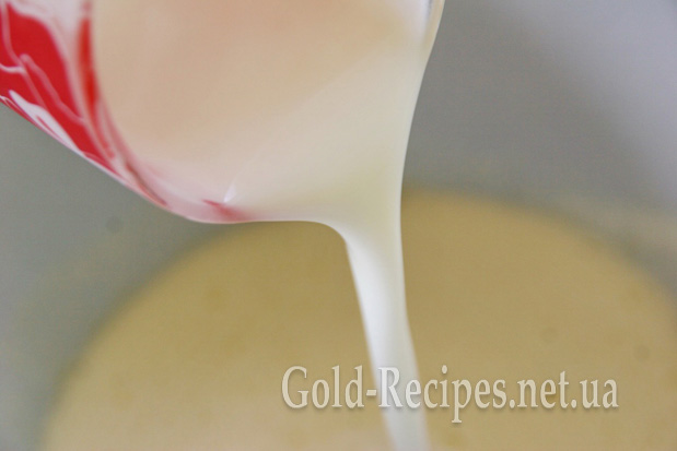 Додаємо кефір, перемішуємо.